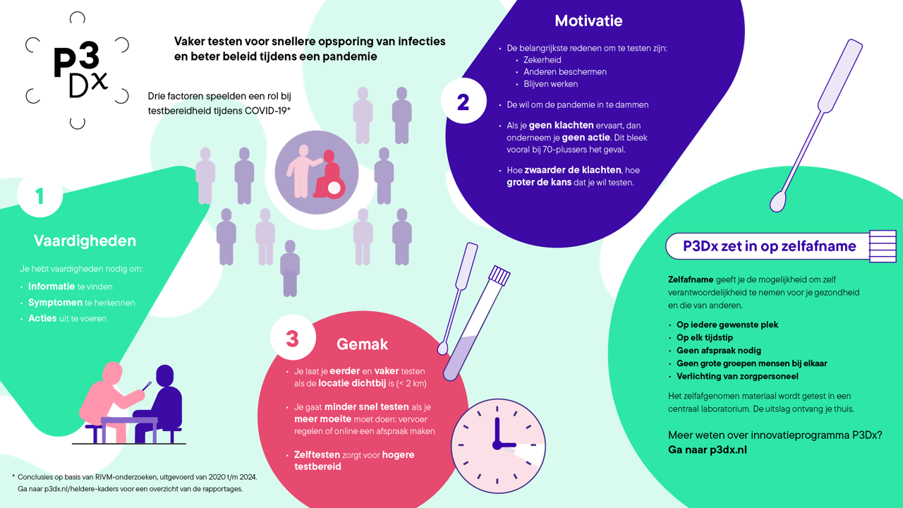 In het kader van het P3Dx-deelprogramma Heldere kaders heeft het RIVM diverse onderzoeken uitgevoerd naar testbereidheid van de Nederlandse bevolkingsgroepen.